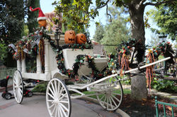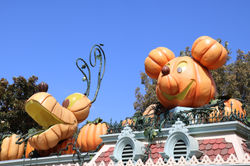 During Halloween Mickey and his pals appear on Main Street in their Halloween costumes and villains appear throught the park. Also, Jack and Sally meet rightout side a specialy themed Haunted Mansion: Holdiay.